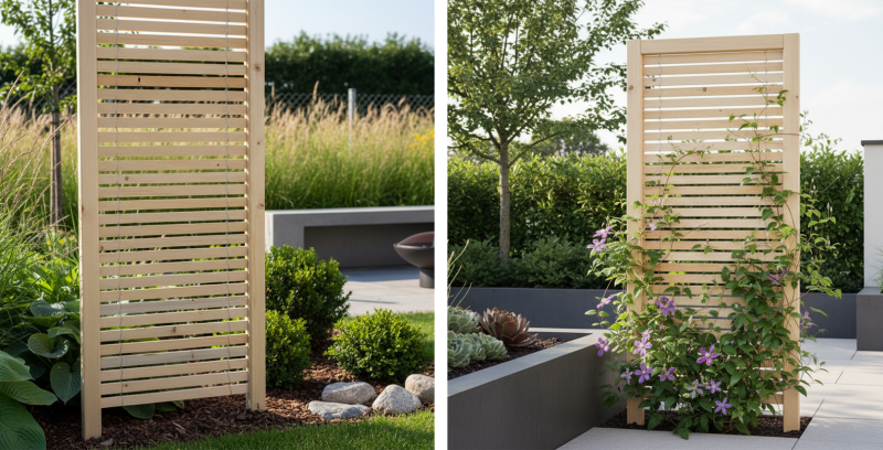 Dřevěná treláž s jednoduchým designem, ideální pro moderní i klasické zahrady.